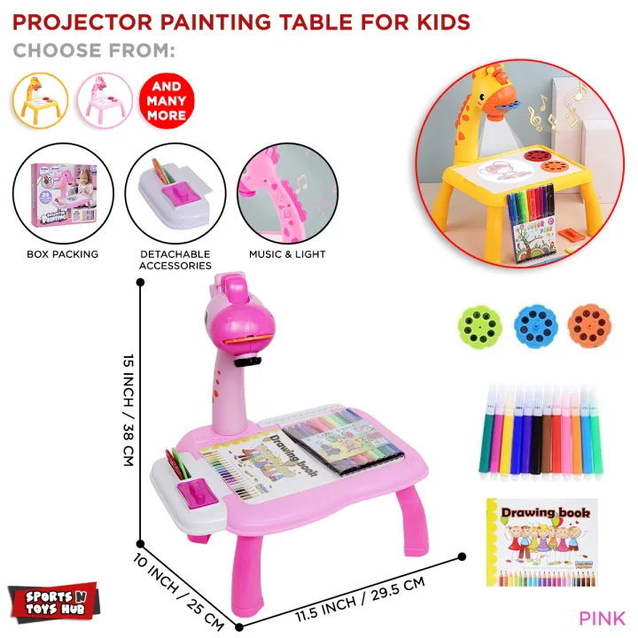 Kids Drawing Projector Painting Table, 24 Pattern Trace and Draw Projector Toy With Light and Music Painting Board Educational Drawing Playset For Boys & Girls Paint Table Children's Early Education Toy Pre School & Montessori Student