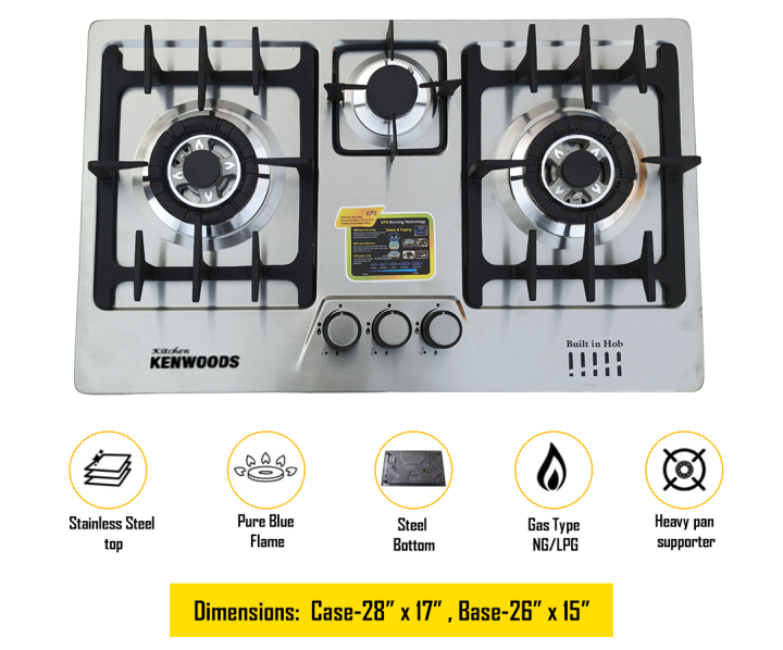 Kitchen Kenwood 3 Burner Stove Burner With Stainless Steel Top And Auto Ignition System(Both Natural Gas And LPG Models Available)