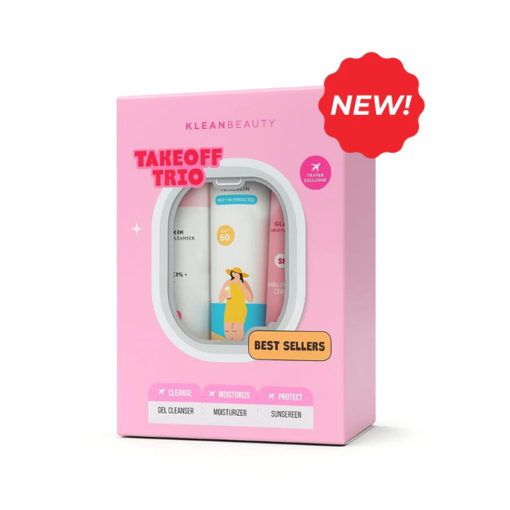 Klean Beauty-Take Off Trio = 15ml Clarifying Gel Facewash + 15ml Hydrating Moisturizer + 15ml Melt in Sunscreen | Travel kit | Travel-Friendly | Melt In Hydrating Sunscreen Cream Sunscreen | Water Resistant | Non-Greasy | sunblock | Korean glass skin | Ba