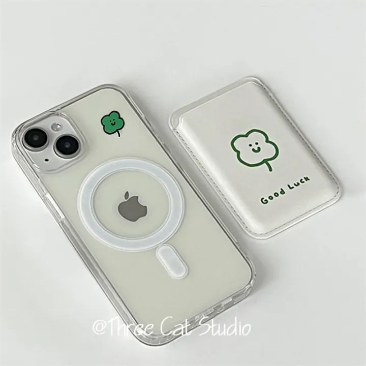 Korean Lucky Four-leaf Clover For Magsafe Wireless Charge Clear Phone Case For iPhone 15 14 12 13 11 Pro Max Wallet Back Cover