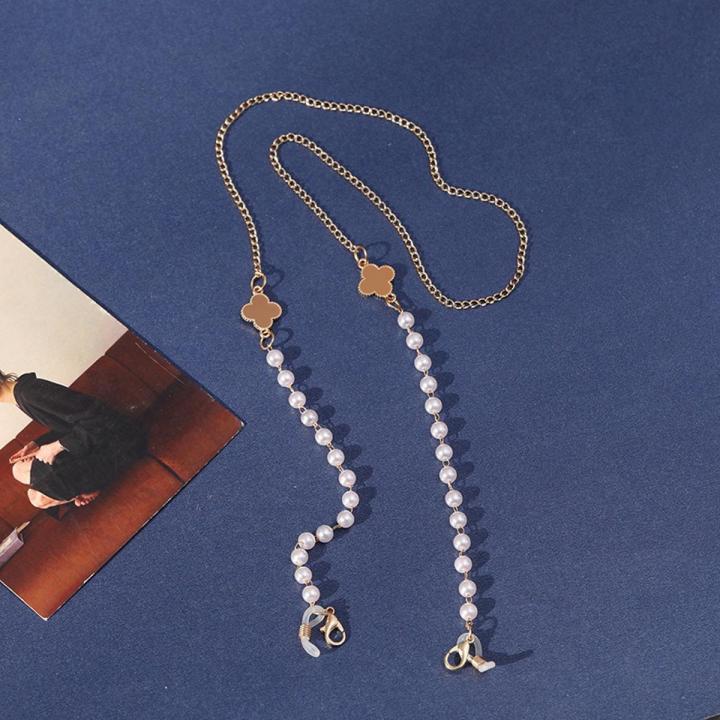 Korean Version of Four-Leaf Clover Pearl Bow Knot Necklace Anti-Lost Lanyard Female Fashion Mask Lanyard