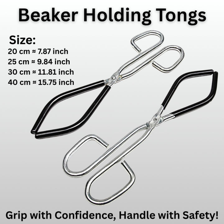 Beaker Tong 25cm, 30cm & 40cm Professional Laboratory Tongs – Galvanized Iron or Chrome-Plated Body with Non-Slip Rubber-Coated Ends, Strong Secure Grip for Safe Handling of Hot Glassware, Beakers & Flasks, Heat-Resistant, Durable and Reusable for Lab Use