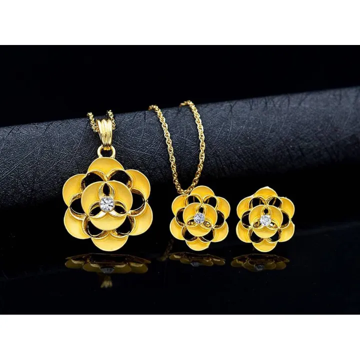 Ladies Gold Plated Ear Rings Set, Jewellery Sets For Women Necklace with Zirconia stone Pendant Paired with a Couple of Ear Tops.For Party Wedding,Engagement ,anniversary Cubic Zirconia Jewelry Sets