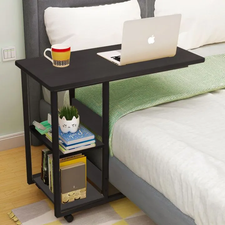 Modern Multifunctional Bedside Table with Storage Shelves and Rolling Wheels