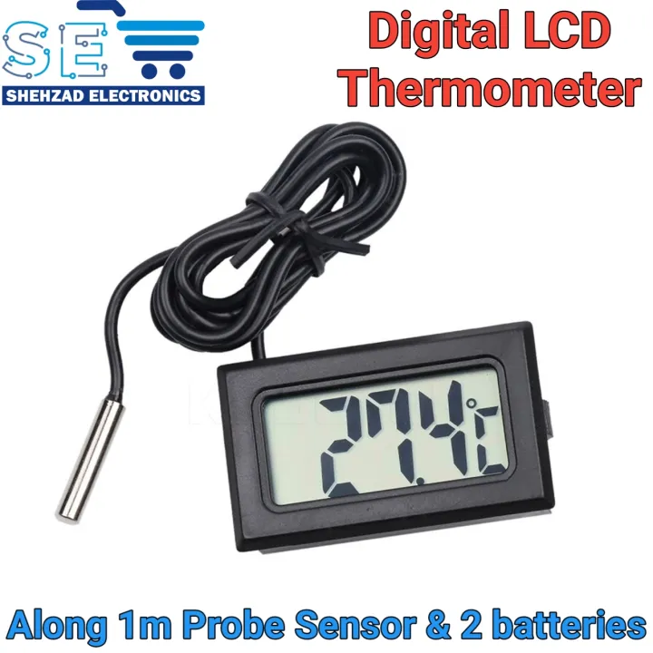 Digital LCD Thermometer with 1m Probe & 2 Batteries – High Accuracy Temperature Display