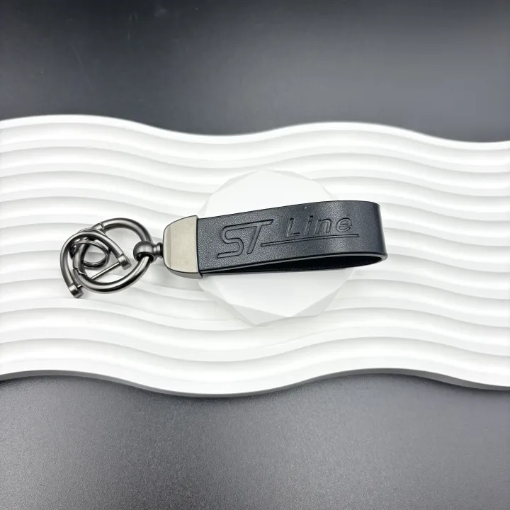 Leather Keychain STline ST Logo Keyring ST Line Key Chain For Ford Puma Kuga Edge Ecosport Mondeo Focus Fiesta ST Line Keychain