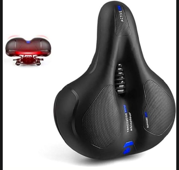 Leather, Reflective Strip Seat Cushion and Dual Shock Absorbing Rubber Balls, Universal Fit Bike Saddle for Exercise & Outdoor Bicycles