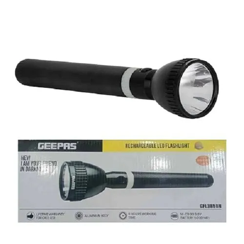 Original Geepas Rechargeable LED Flashlight, 357MM, GFL3858 | Portable Torch | Charge 1500 Times, 6 Hours Continuous Working with 3000mAh Rechargeable Battery