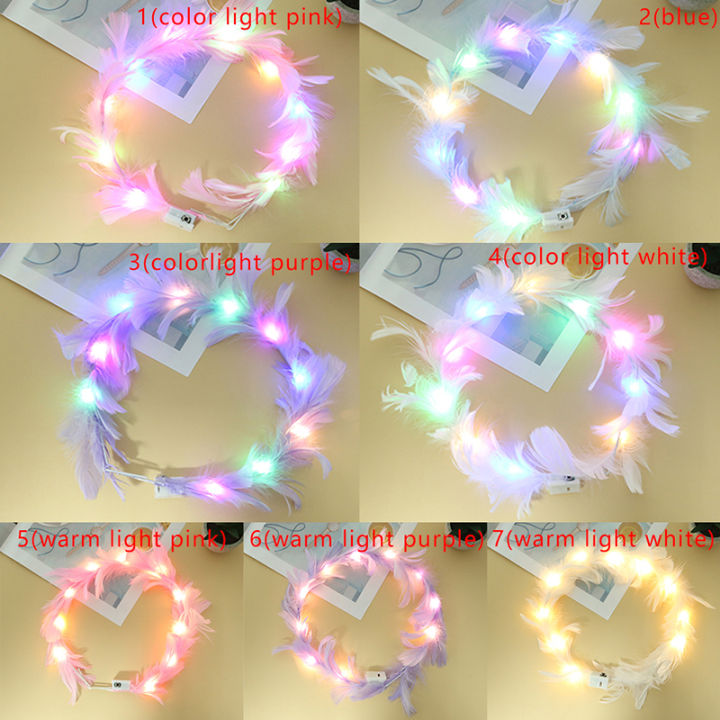 LED Feather Wreath Crown Light-Up Luminous Headdress for Women Girls Wedding Christmas Glow Party Decoration Mzea