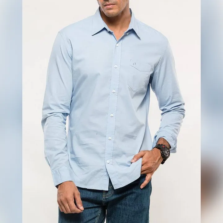 Light Blue Cotton Woven Shirt for Men
