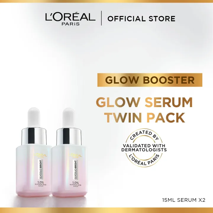 L'Oreal Paris Glow Serum Twin Pack 15ml (Pack of 2 Glycolic Serum 15ml)