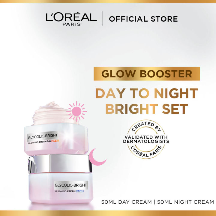 L'Oreal%20Paris%20Glowy%20Skin%20Day%20&%20Night%20Set%20(Glycolic%20Day%20Cream%2050ml%20+%20Glycolic%20Night%20Cream%2050ml)%20-%20Image%201