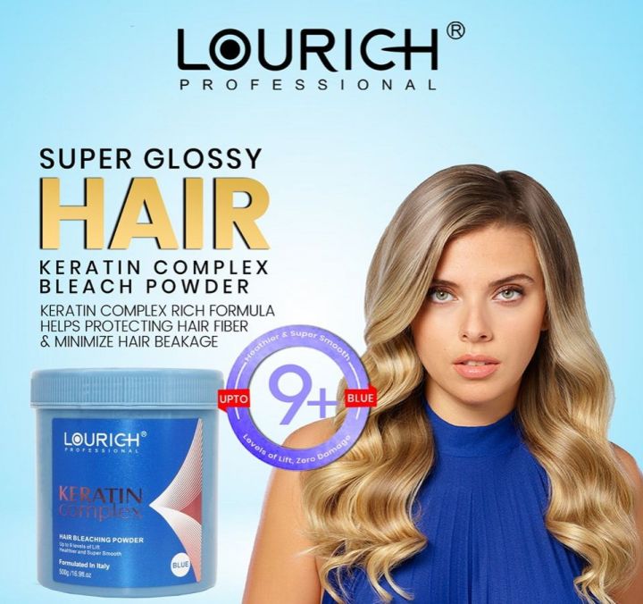 LOURICH Professional – Hair Bleaching Powder with Keratin Complex (Blue) 500gm 9 Levels of Lift