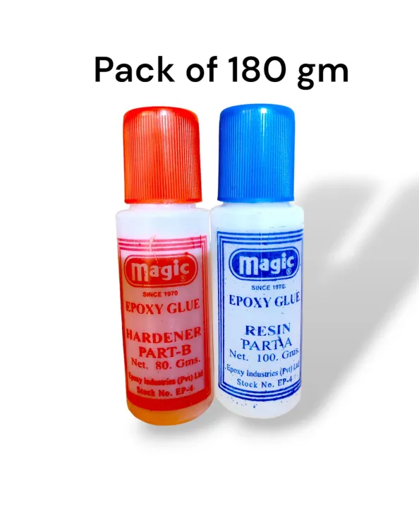 Magic Epoxy Resin and Hardner 180 Grams Packed in plastic bottles available in 3 sizes 180 gm, 900 gm,1800 gm.