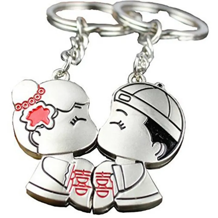 Magnetic Keychain 1Pair Couple Keychain Cartoon Bride/Bridegroom Kiss Key Ring Lovers Love Key Chain Souvenirs Couple gift Valentine's Day Gift