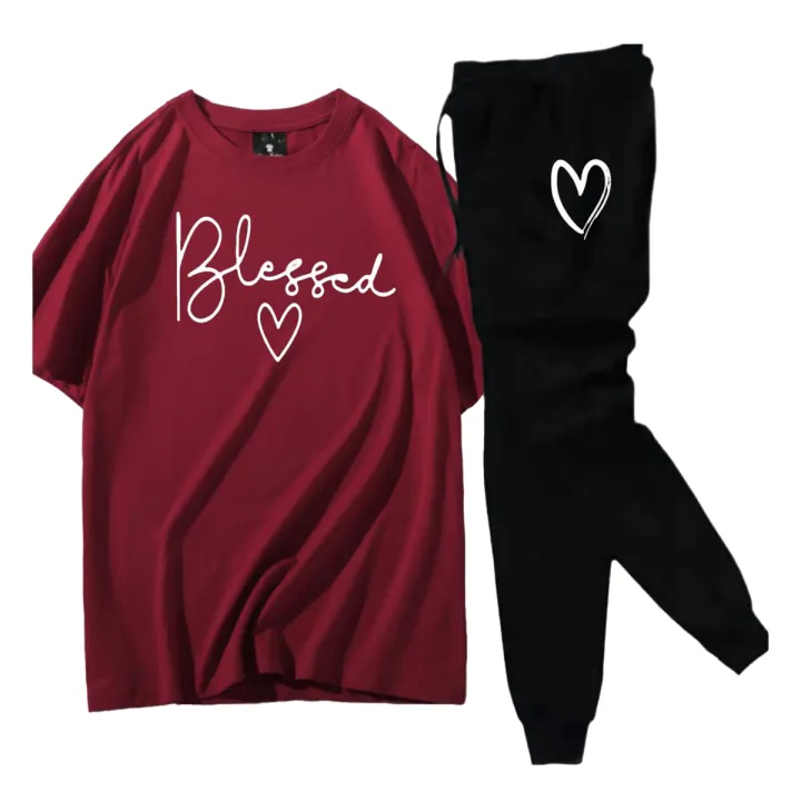 Maroon Trendy Printed Tracksuit For Girls & Womens - Soft & Comfortable Fabric T Shirt & Trouser Printed Tracksuit
