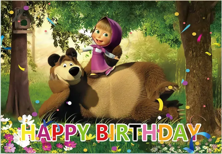 Masha%20And%20The%20Bear%20%20Banner%20-%2036%20Inch%20By%2024%20Inch%20-%20Birthday%20Banner%20-%20Masha%20And%20The%20Bear%C2%A0Themed%20Party%20-%20Multicolor%20-%20Girls%20-%20Pack%20Of%201%20-%20Image%201