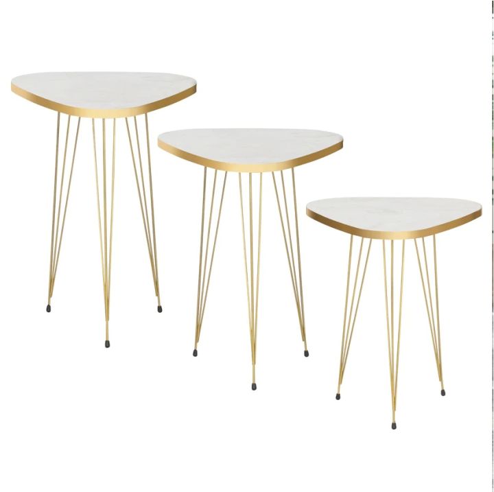 Mdf Wood Triangle Nesting Table With Metal Stand Set of 3 Round table Table Decoration coffee table round coffee table dining table Nesting table set Side Table Coffee Table nesting table Decor