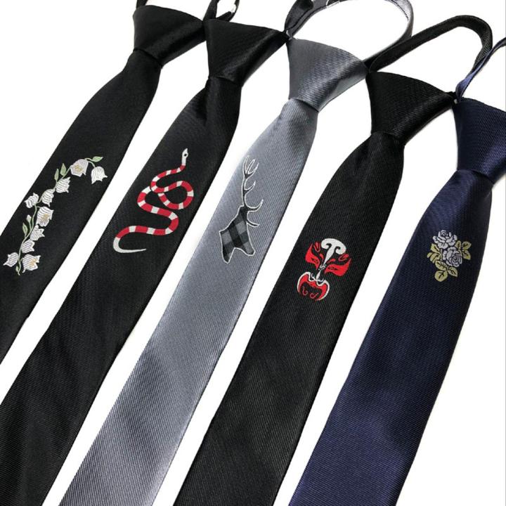Men's embroidered tie JK zipper lazy easy to pull Korean version of the wedding personality mark logo narrow tie 5CM
