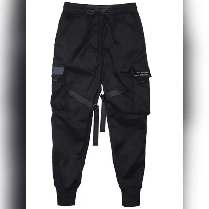 Men's Loose Cargo Pant, Fashion Adjustable Straps Tapered Trousers with Multi Pockets