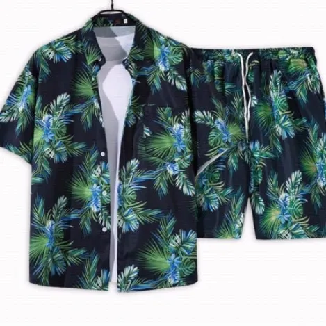 Men's Summer short sleeve printed shirt & short beach wear linen