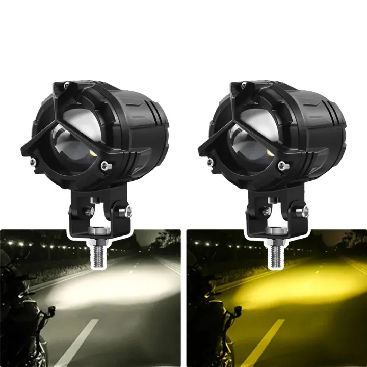 Mercedes Style Universal Mini Driving Light Super Bright Projector Lens Double Color Led Light Round Shape With Y Shape Front Frame Laser Beam Spot Projector White/Yellow LED Light Top Recommended Product Universal Fitment Honda, Suzuki, Yamaha etc