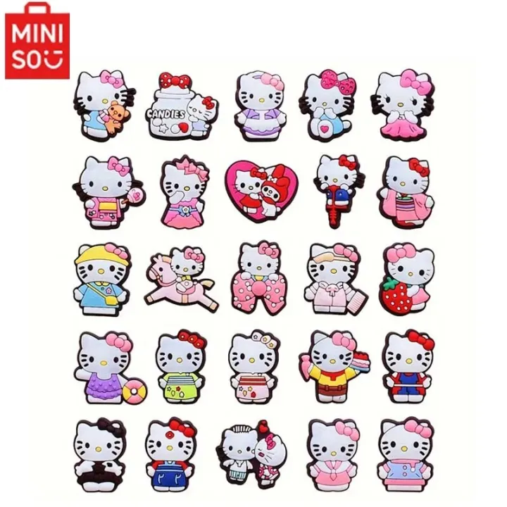 MESUCA 25pcs Hello Kitty Shoe Decorations Accessories Charms For Clogs Bogg Bag Bubble Slides Sandals, Gift Idea for Birthday