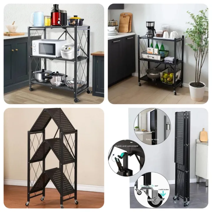 Metal 3 Layer Foldable Kitchen Trolley,kitchen organiser / foldable trolley for kitchen or rooms