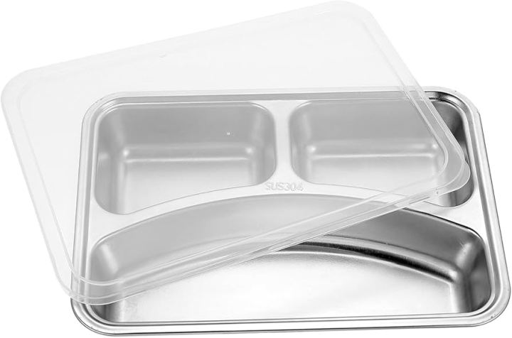 Metal%20Sectioned%20Plate%20Stainless%20Steel%20Divided%20Plates%20with%20Lid,%20Rectangular%20Dinner%20Tray%20Diet%20Plate%20with%203%20Sections,%20Steckable%20Serving%20Platter%20Snack%20Fruit%20Plate%20for,%20Campers%20-%20Image%201