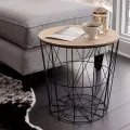METAL WIRE REMOVABLE WOOD TOP FOLDABLE ROUND COFFEE SIDE TABLE STORAGE BASKET( 16 L 16 W 18.5 H )