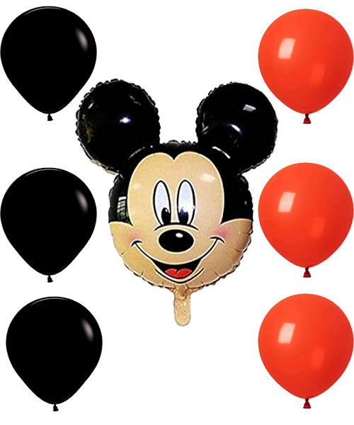 Mickey Mouse Head Foil Balloon & 6 Red Black Latex Balloons For Kids Birthday Party Decoration