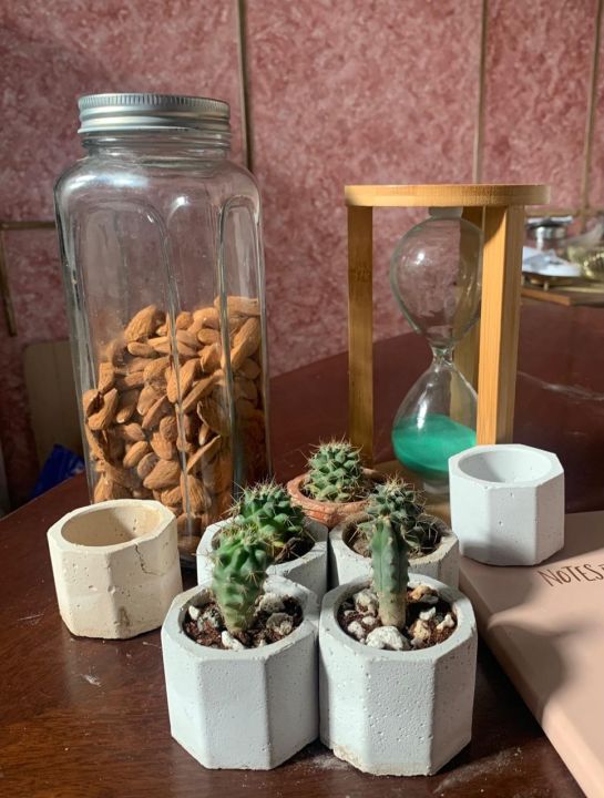 Mini cactus real plants in pots, rooted succulent plants in soil and assorted pots