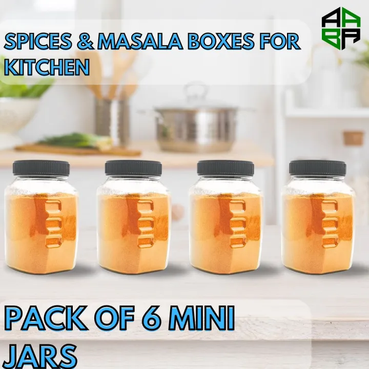 MINI%20TEA%20JAR%20Pack%20of%206%20Jars%20for%20Kitchen%20-%20250%20GM%20STORAGE%20JARS%20SET%20RACK%20Storage%20FOOD%20GRADE%20plastic%20TEA%20DESIGN%20250GMS,%20Jars%20for%20kitchen,%20Spice%20Jars%20for%20kitchen%20-%20Image%201