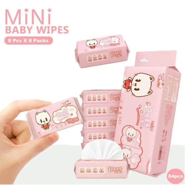 Mini Wet Wipes, Pocket Tissue Papers, Paper Napkin, cleaning wipes sanitary items, baby wipes, travel size tissue paper, Soft Cleansing Baby Wipes (8pcs x 8pack)