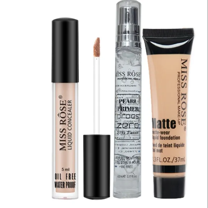 MISS ROSE Concealer , Matte Foundation & Pearl Primer 22ml - 3 Pcs Set