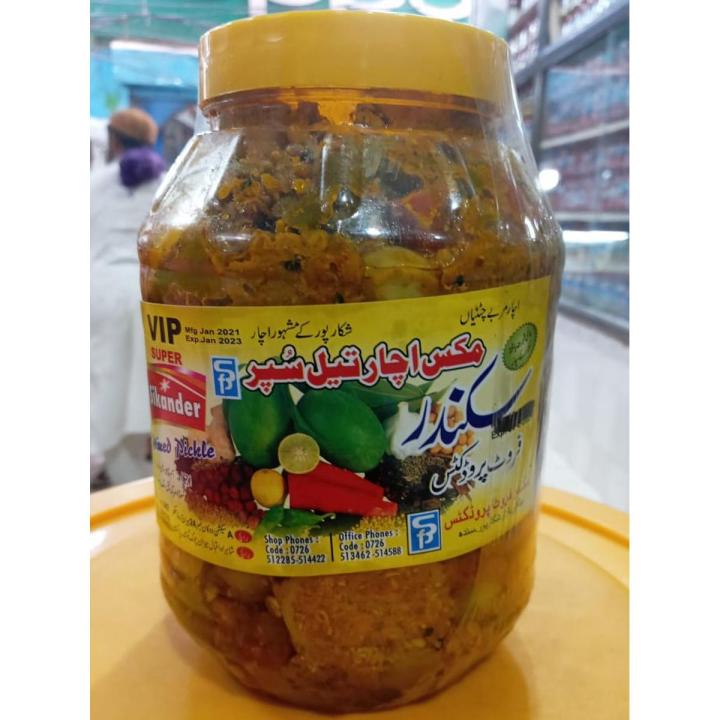 Mixed Pickle in Oil Mix Achar Tail - 2 KG - 100% Original Shikarpuri Achar - Sikandar Shikarpuri Pickles