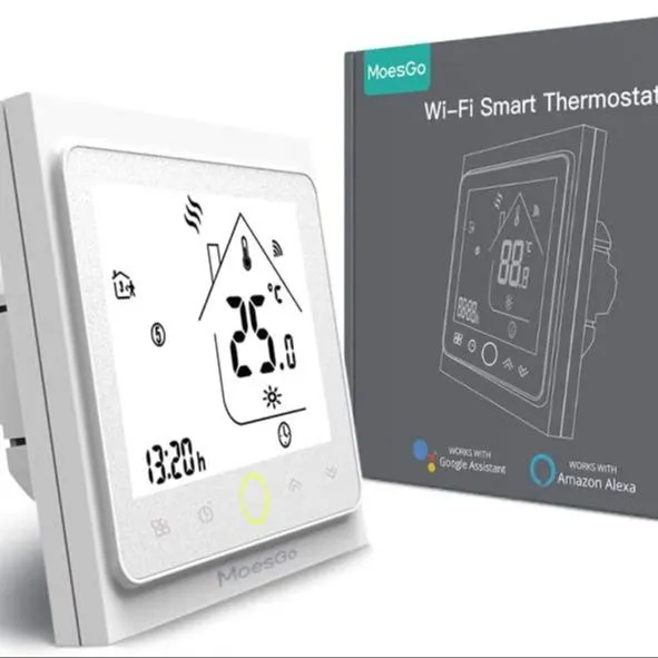 MoesGo Smart Thermostat for Gas Water Boilers Heating 2.4GHz WiFi Temperature Controller, Netural Wire Required, Remote Control and Voice Control by Smart Life/Tuya App, Alexa, Google Home (White)