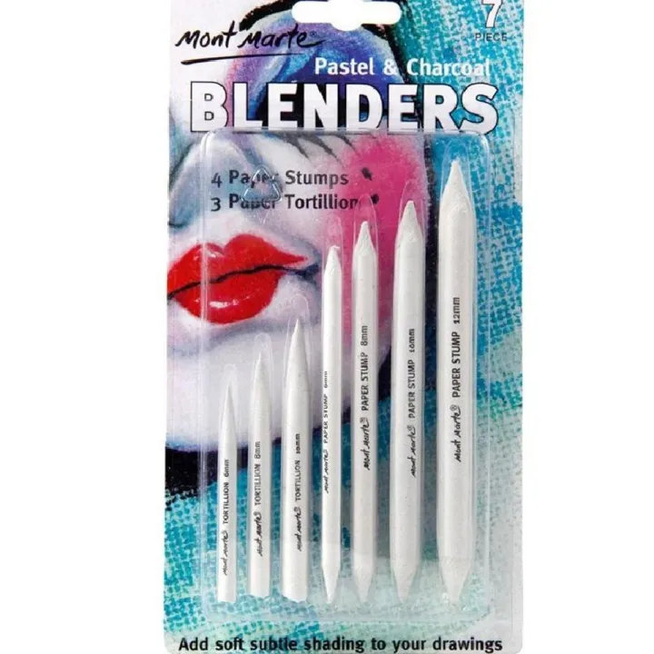 Mont Marte 7 Pieces Set Charcoal Blender Blending Stump Pastels & Tortillion For Sketch Drawing
