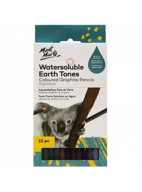 MONT MARTE WATERSOLUBLE EARTH TONES COLOURED GRAPHITE PENCILS SIGNATURE 12PCS