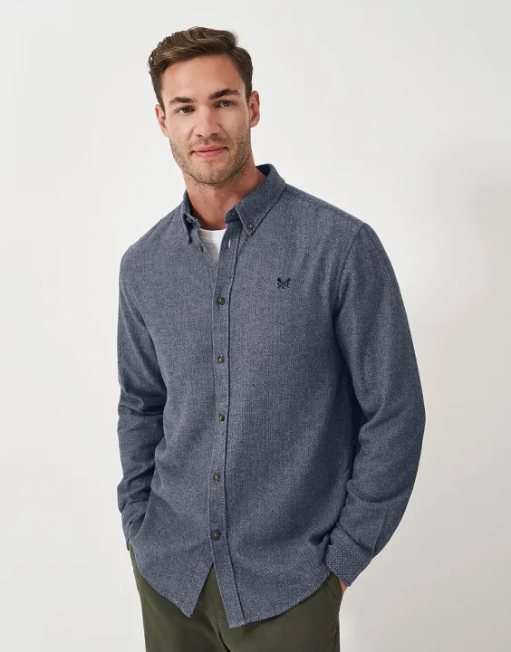Crew Clothing UK Men’s Flannel Herringbone Shirt – Blue Multi | Regular Fit 100% Cotton | Long Sleeves | Sold by Moonwalk