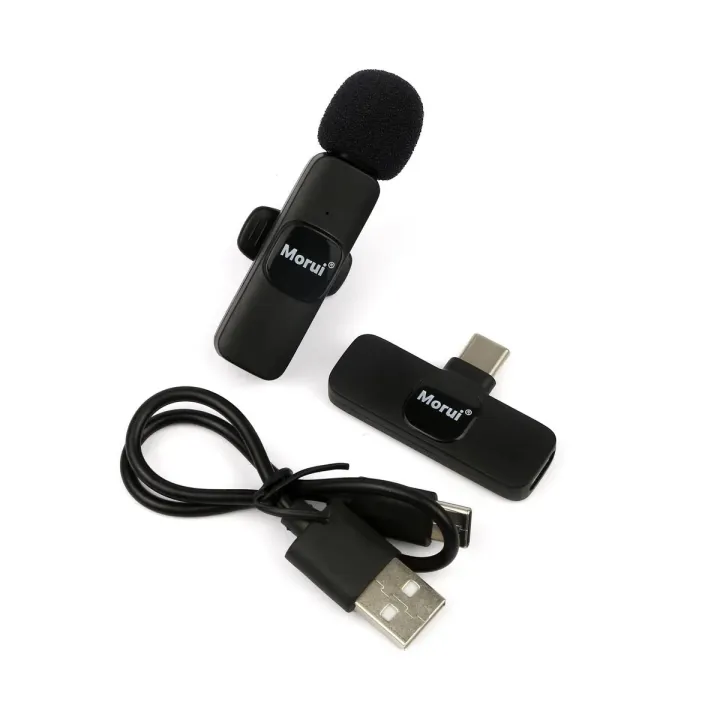 Morui 2 In 1 Mic (GM-H9) - Wireless Microphone For live show , interview and vlogging - Long-range Ecosphere wireless Mic - Microphone For YouTube - Collar Mic - (Compatible With Both IPhone And Type C) | SharkTeck