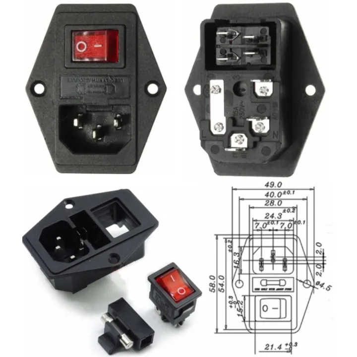 MSK AC 110-220V Power Socket + Fuse Holder + Rocker Switch