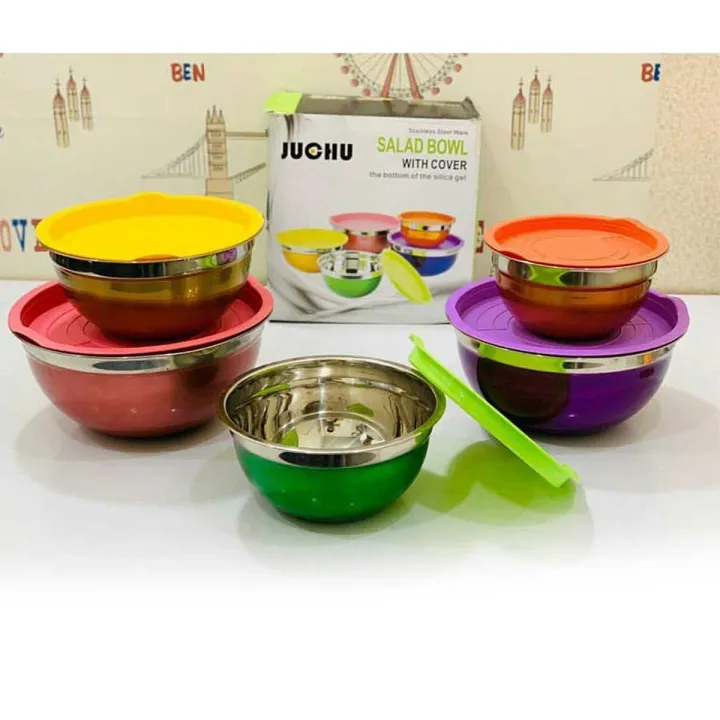 Multi%20Color%205%20Pcs%20Stainless%20Steel%20Salad%20Bowl%20With%20Cover%20Multi%20Color%20-%20Image%201