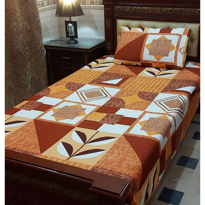 Multi Color Cotton Single Bedsheet Set (1 Bed Sheet with 1-Pillow Cover)