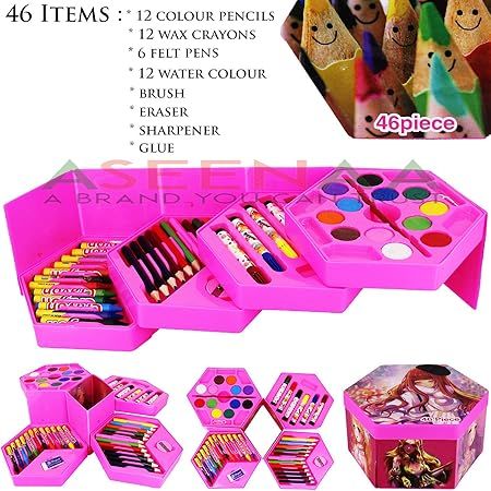Multicolour Art Box Colouring Box Set Art Set Colour Kit 46 Pcs Crayons- Colour Pencils- Water Colour Art & Craft For Kids School Accessories