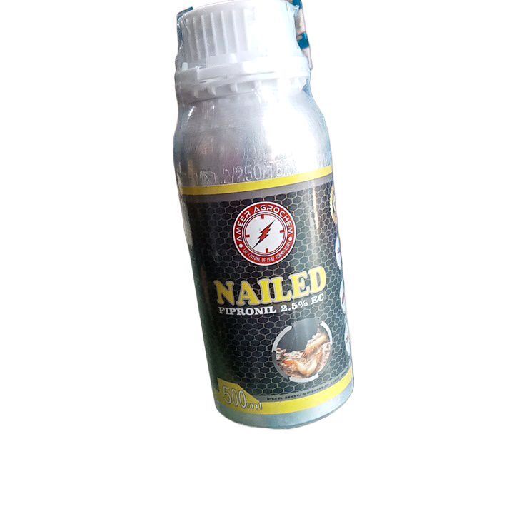 Nailed Fipronil 2.5% EC 500 ml. specially Termite control Chemical for House termite and wood termite. Effective for household and commercial buildings. Easy to use. 1 Litter is used for 2 Marla and mix in Kerosine oil for use on wood.