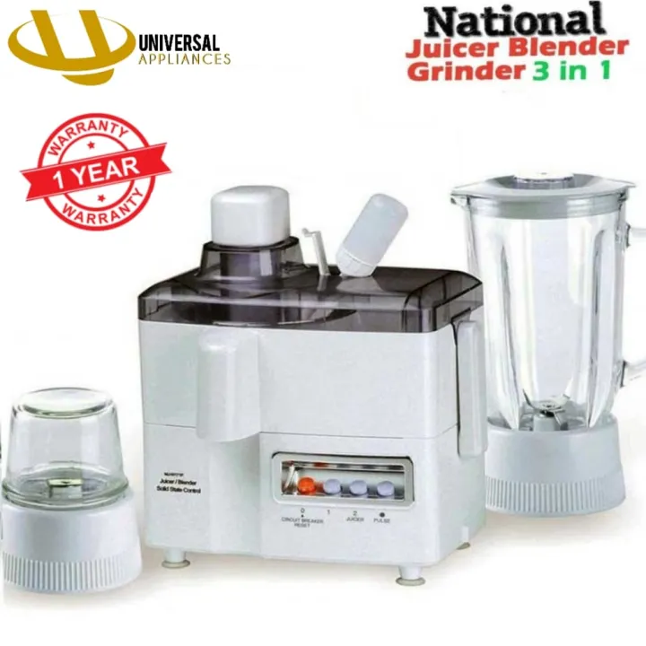 National Juicer Machine 3in1 with 1 Year Warranty, Juicer-Blender-Grinder- Juicer Machine Vegetable and Fruit Juice Extractor - Power Juicer with 900W & Stainless Steel Filter - Heavy Duty Machine Motor