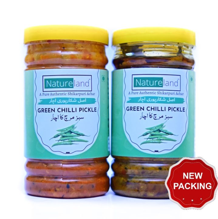 Natureland Shikarpuri Green Chilli Pickle 1KG - Mirch ka Achar - Original Shikarpuri Achar