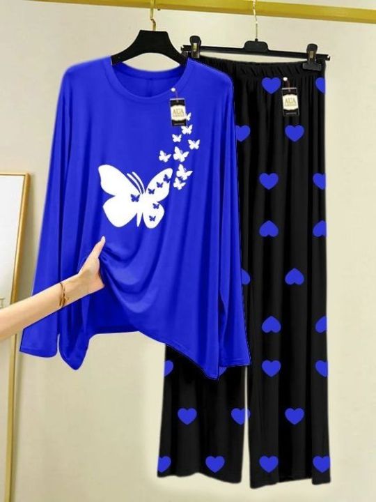 NAVY%20BLUE%20FLYING%20BUTTERFLY%20Printed%20Nightwear%20Set%20with%20Black%20Mini%20Heart%20Printed%20Trousers%20%E2%80%93%20Women's%20Lounge%20Wear%20(006)%20-%20Image%201