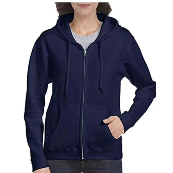 Navy Blue Zipper Hoodie For Women